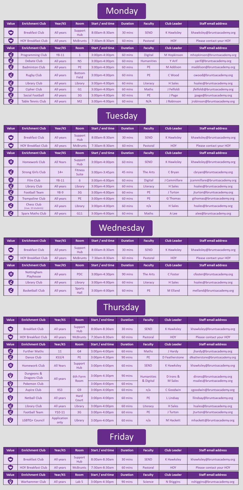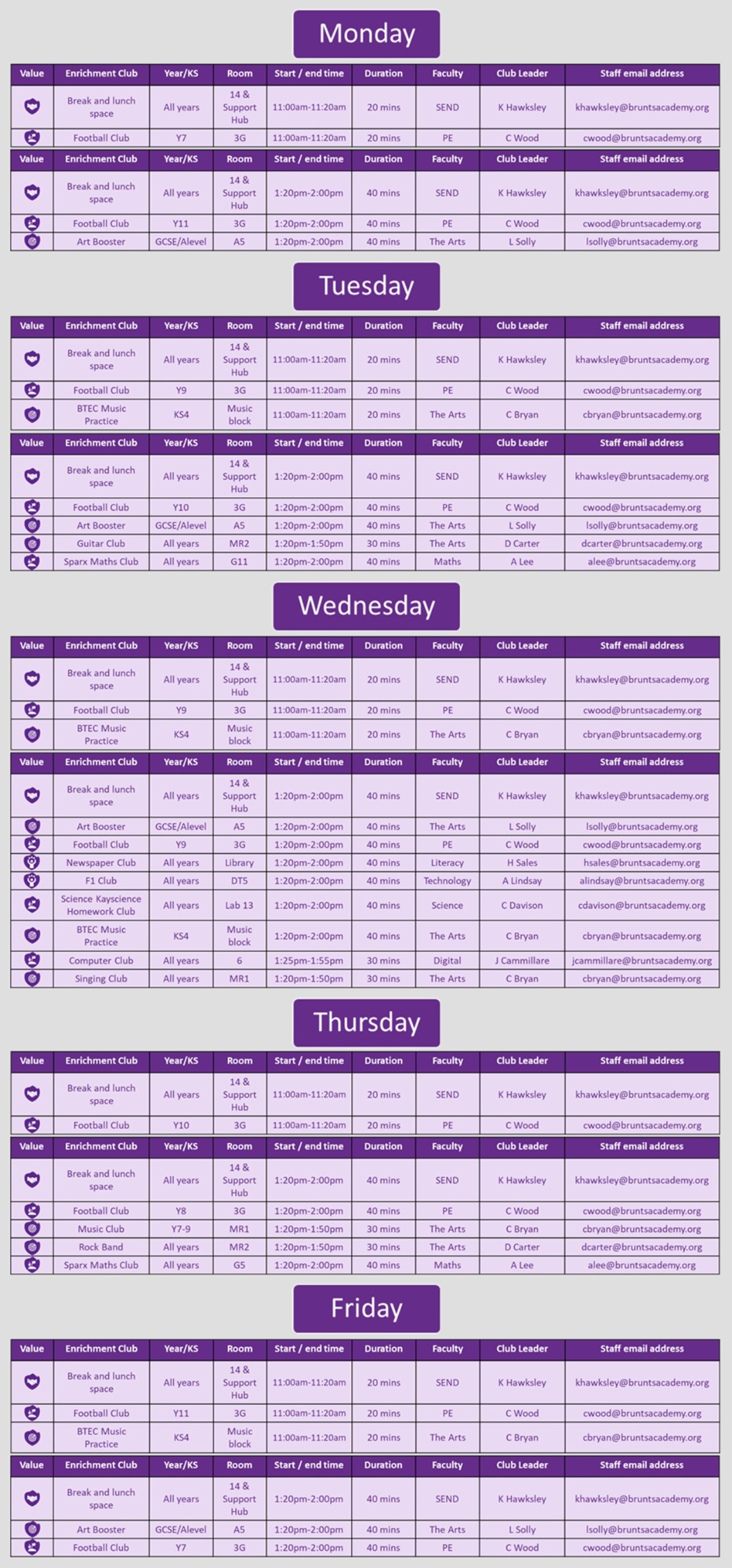 Enrichment Timetables